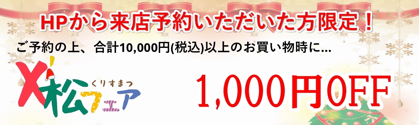 クリスマスフェア期間ならではの品揃え、特別価格でご案内!ここにない商品もスタッフまでご相談ください!
