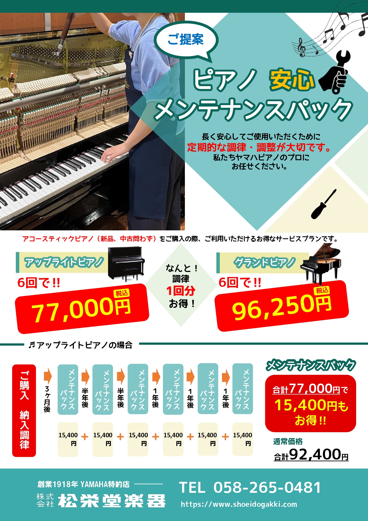 通常調律6回¥92,400(¥15,400/1回)のところ