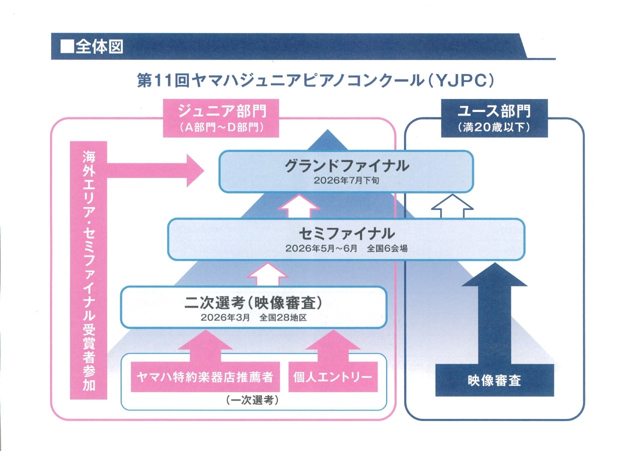 ピアノを学ぶ生徒の学習と研鑽、及び若いピアニスト育成の場として開催される「ヤマハジュニアピアノコンクール(以下YJPC)」に先立ち「ピアノフェスティバル2026松栄堂楽器大会」を出場者選考会として開催いたします。