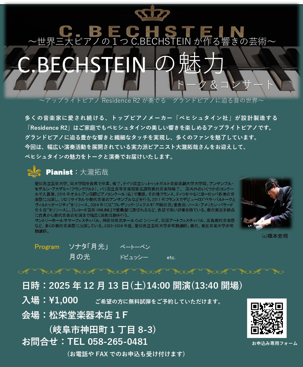 【12/13(土)】C.BECHSTEINの魅力 トーク&コンサート開催
