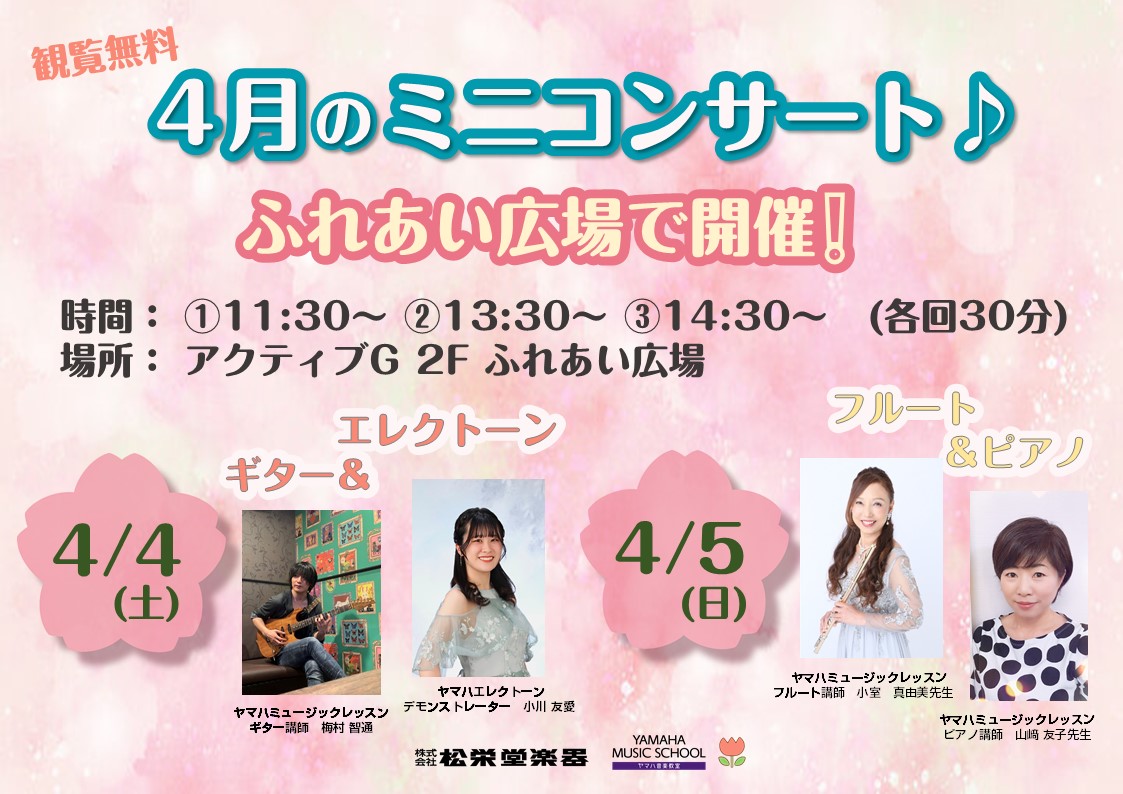 【4/4、4/5開催】ミニコンサート@アクティブG 2F ふれあい広場