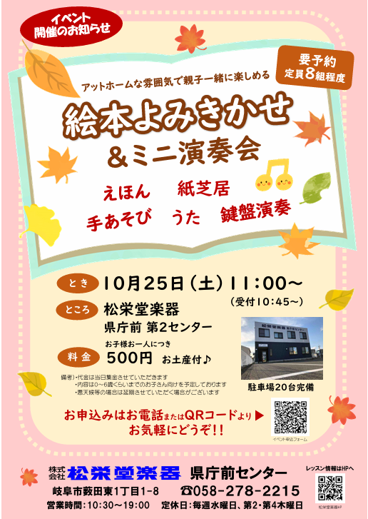 【10/25(土)県庁前センター】絵本よみきかせ&ミニ演奏会開催♪