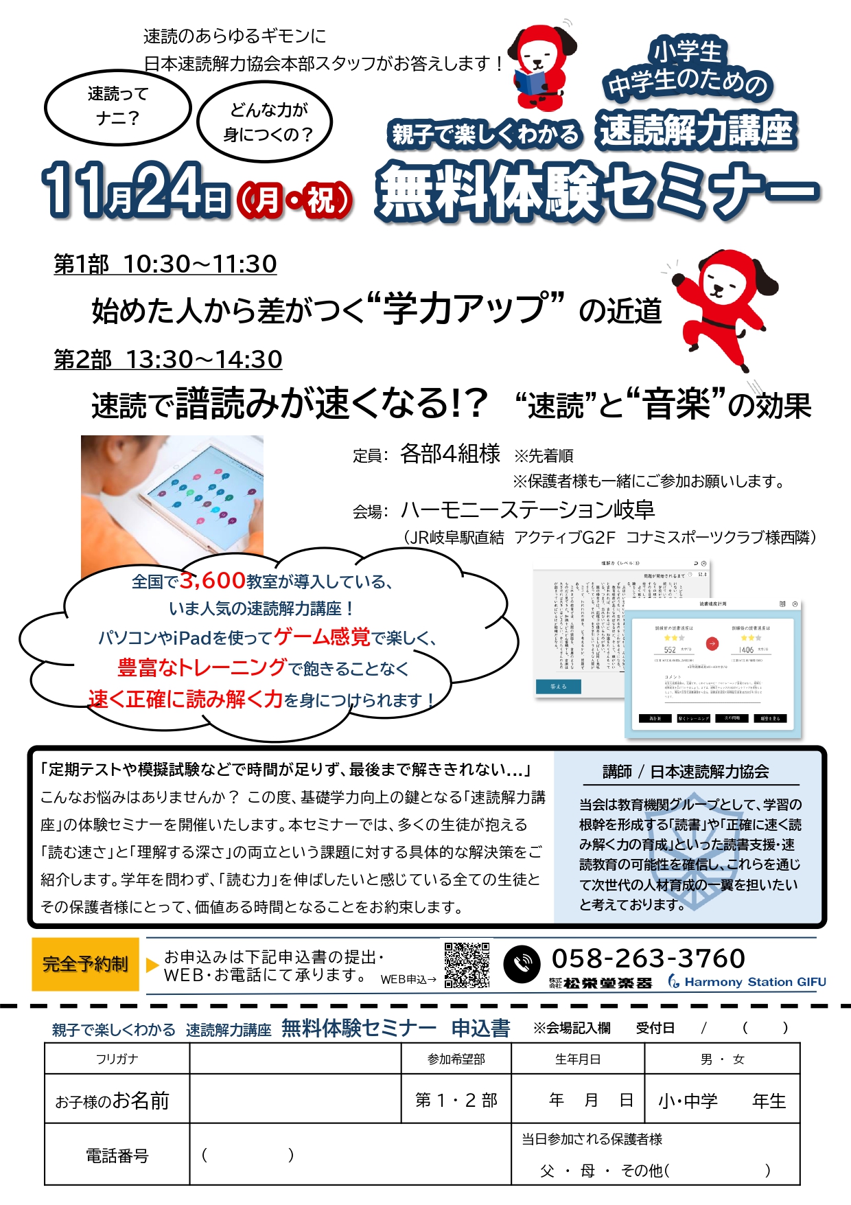 11/24(月・祝)親子で楽しくわかる速読解力講座 無料体験セミナー開催